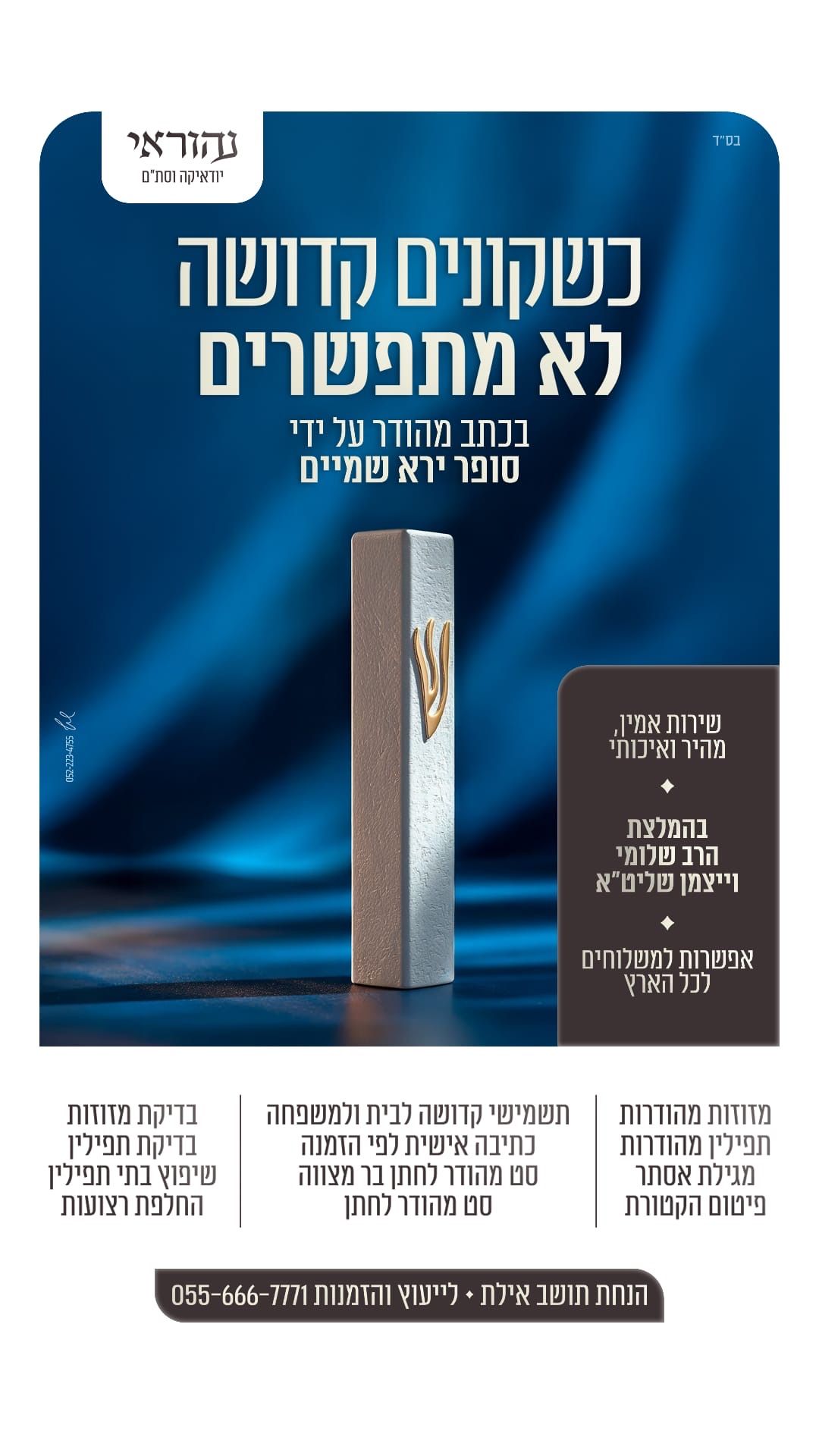בהמלצת הרב שלומי ויצמן שליט״א בנהוראי יודאיקה תקבלו קדושה, מהודרות ואמינות ושירות מכל הלב.